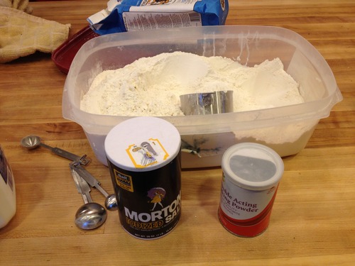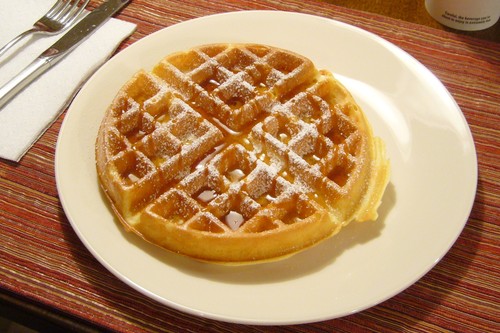 - In a large bowl, mix together flour, salt, baking powder and sugar; set aside. Preheat waffle iron to desired temperature.